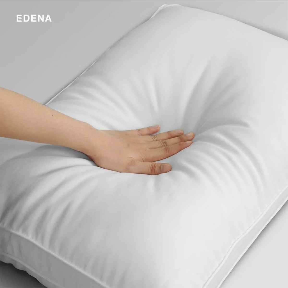 Gối tơ tằm Edena được làm từ gòn tơ tằm cao cấp, bao gồm các sợi gòn Micro Fiber siêu nhỏ và siêu mịn, có độ đàn hồi và khả năng phục hồi cực tốt. Nhờ đó, gối luôn giữ được độ phồng ổn định, không bị xẹp lún dù sử dụng lâu ngày. Thiết kế giúp nâng đỡ cổ và vai một cách tự nhiên, hạn chế tình trạng đau mỏi sau khi ngủ dậy.