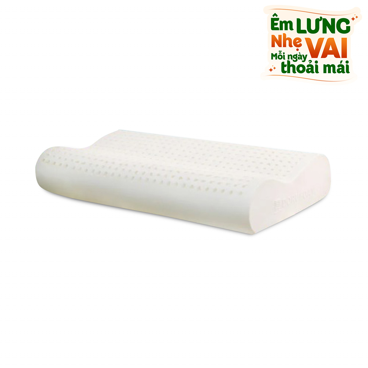 – Gối có 2 cạnh cao, 1 lõm giữa, tạo độ cong nhẹ theo đường cong sinh lý cổ.