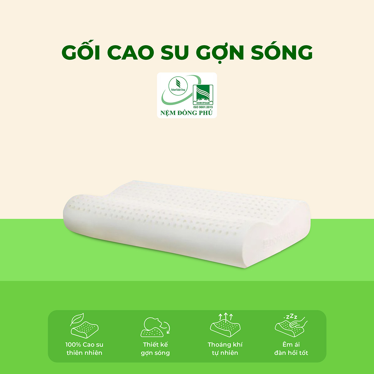 Gối cao su gợn sóng Đồng Phú được sản xuất từ 100% cao su thiên nhiên, đảm bảo an toàn cho sức khỏe và thân thiện với môi trường. Bề mặt gối thiết kế gợn sóng đặc trưng, với hai độ cao linh hoạt, ôm sát vùng cổ – gáy và hỗ trợ nâng đỡ theo đúng tư thế ngủ khoa học.