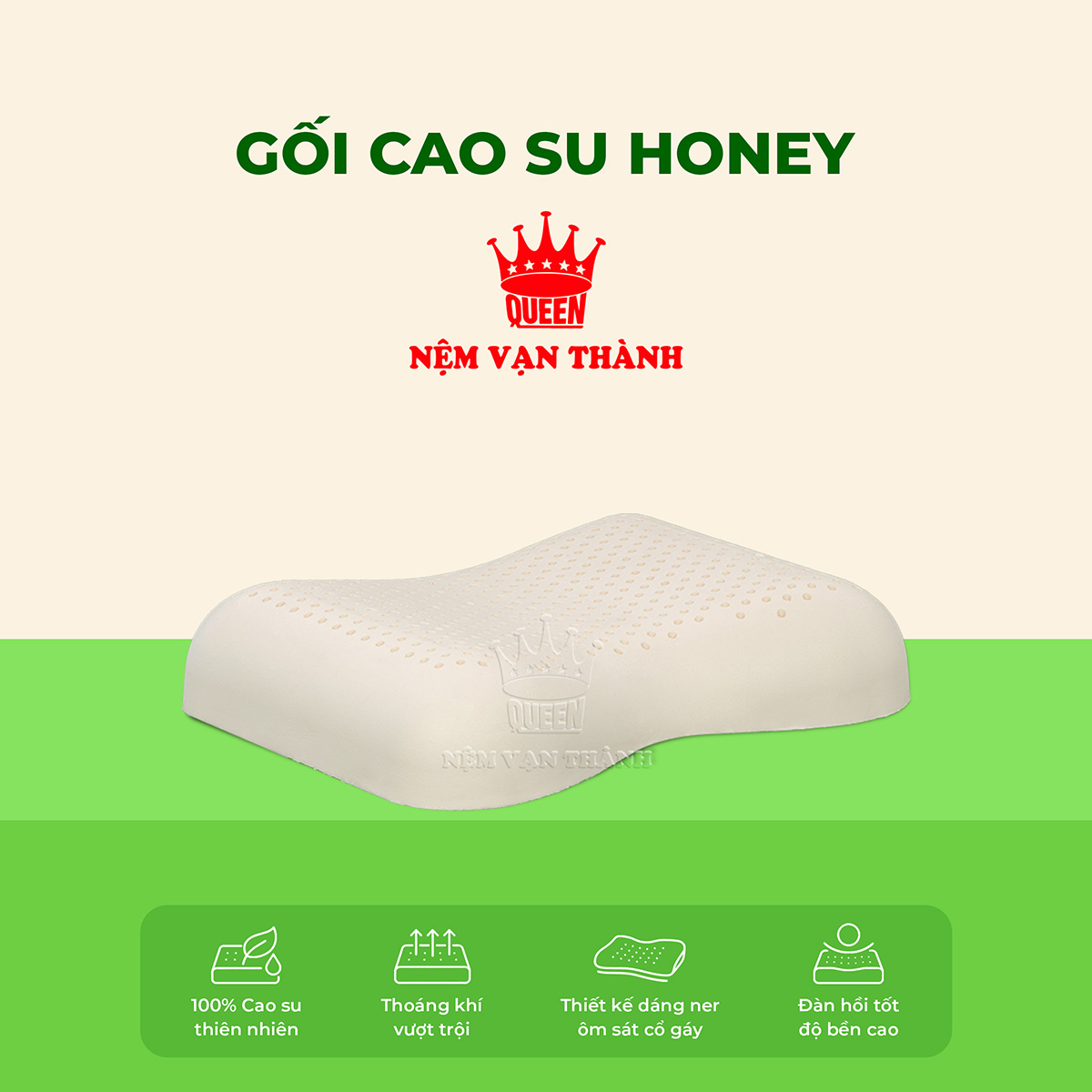 Gối cao su honey Vạn Thành được sản xuất từ 100% cao su thiên nhiên mang lại sự thư giãn tuyệt vời và thông thoáng dễ chịu.
