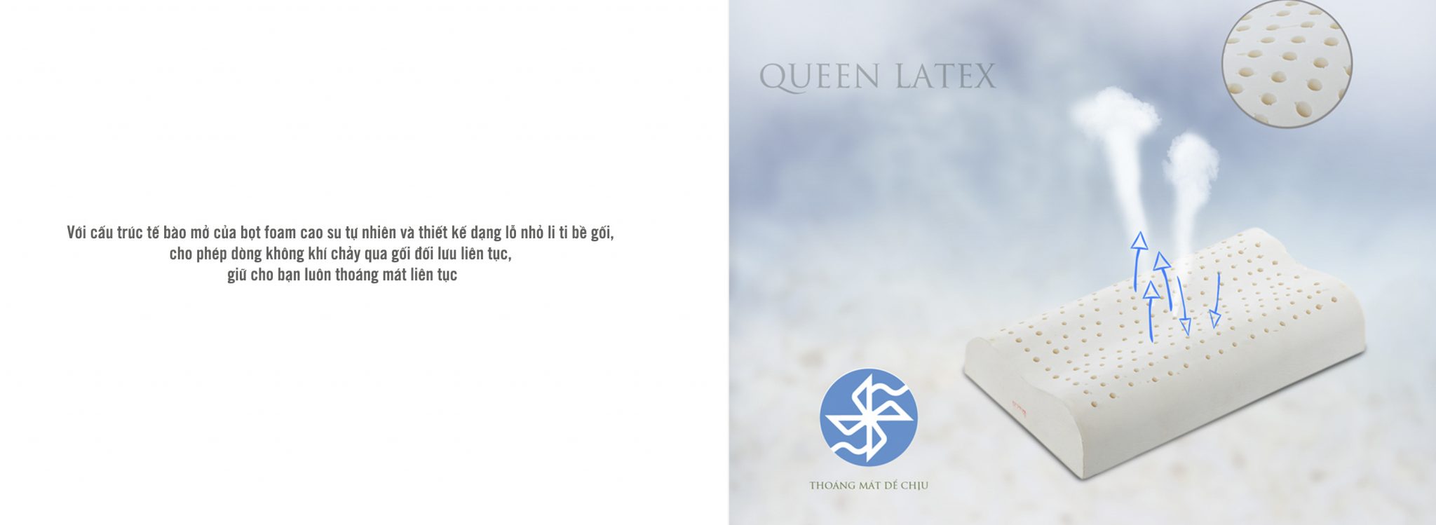 Phần ruột gối được tạo thành từ cấu trúc bọt khí mở với hàng nghìn lỗ thoáng khí, giúp mồ hôi thoát nhanh, luôn mát mẻ và dễ chịu, cực kỳ phù hợp với thời tiết miền Tây nóng ẩm.