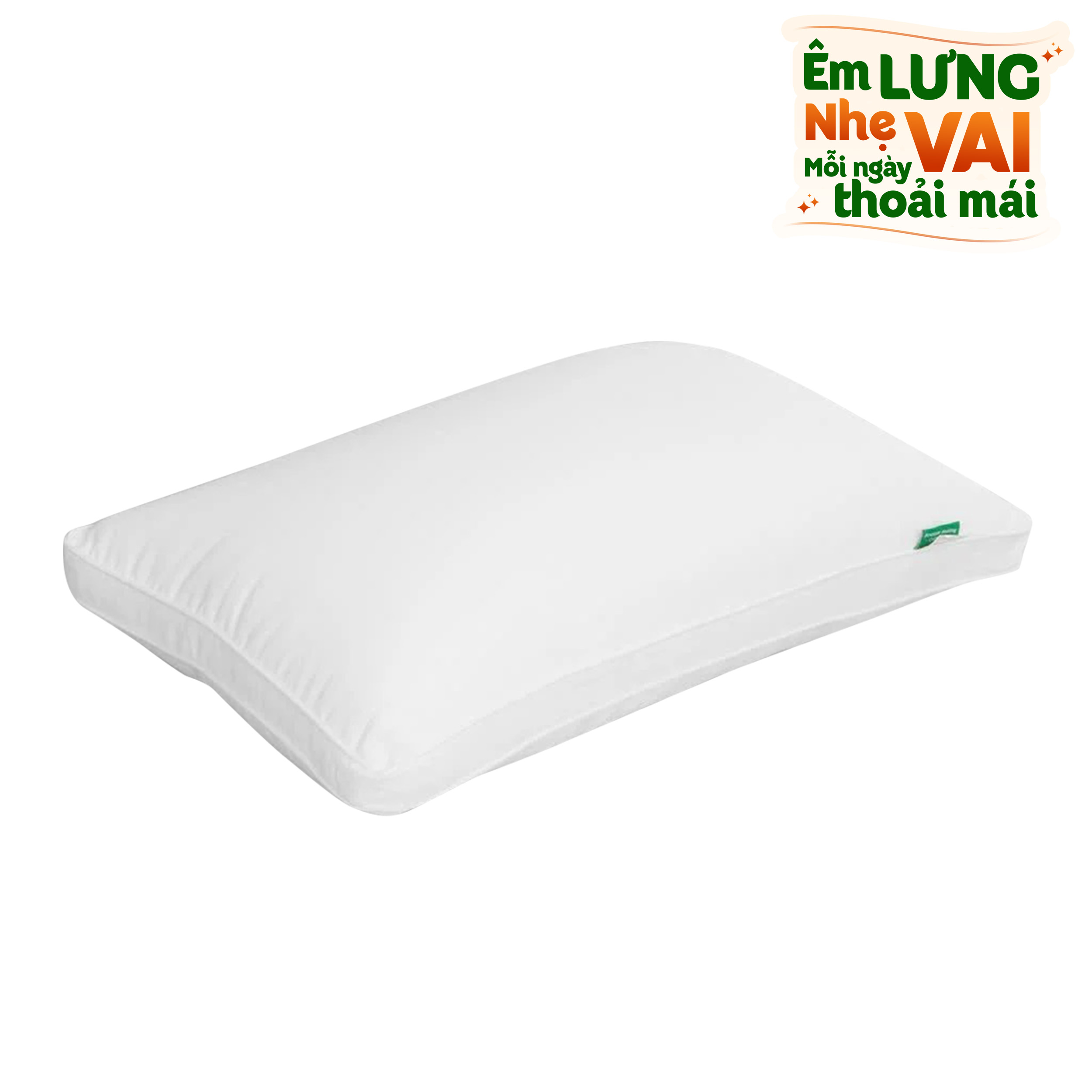 Lớp vỏ bên ngoài sử dụng vải CVC cao cấp nhập khẩu 100%, gồm 50% cotton và 50% polyester. Sự kết hợp này tạo nên chất vải mềm mịn, thoáng mát, ít nhăn và bền chắc theo thời gian. Đặc biệt, mặt trong vỏ có phủ lớp chống chui gòn, giúp ruột gối luôn nằm đúng vị trí, không vón cục, không biến dạng sau thời gian dài sử dụng và giặt giũ.