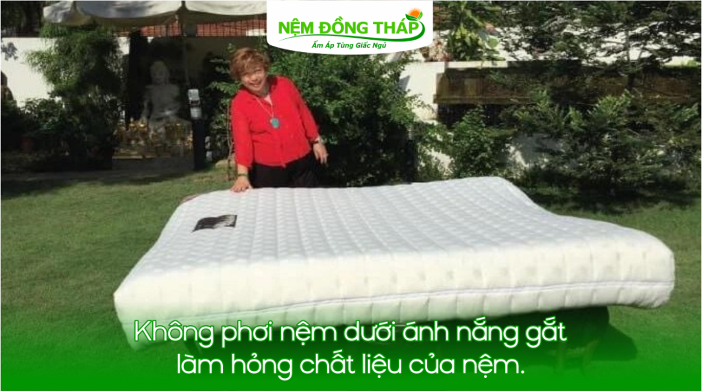 Tránh phơi dưới ánh nắng gắt để không làm hỏng chất liệu của nệm.