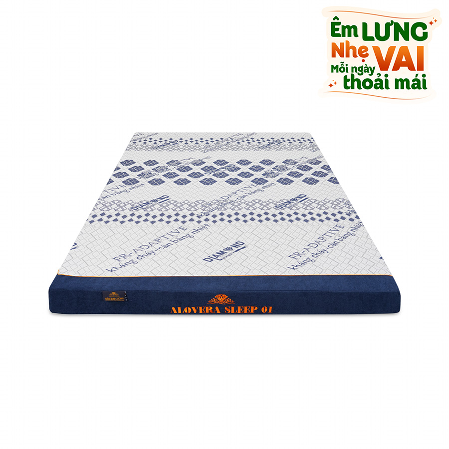 Nệm cao su mousse Kim Cương Aloevera Sleep 01 mang lại nâng đỡ tuyệt vời cho cột sống mà các loại nệm thông thường không làm được bởi sự kết hợp độc đáo từ mousse cao cấp và cao su thiên nhiên 100%.