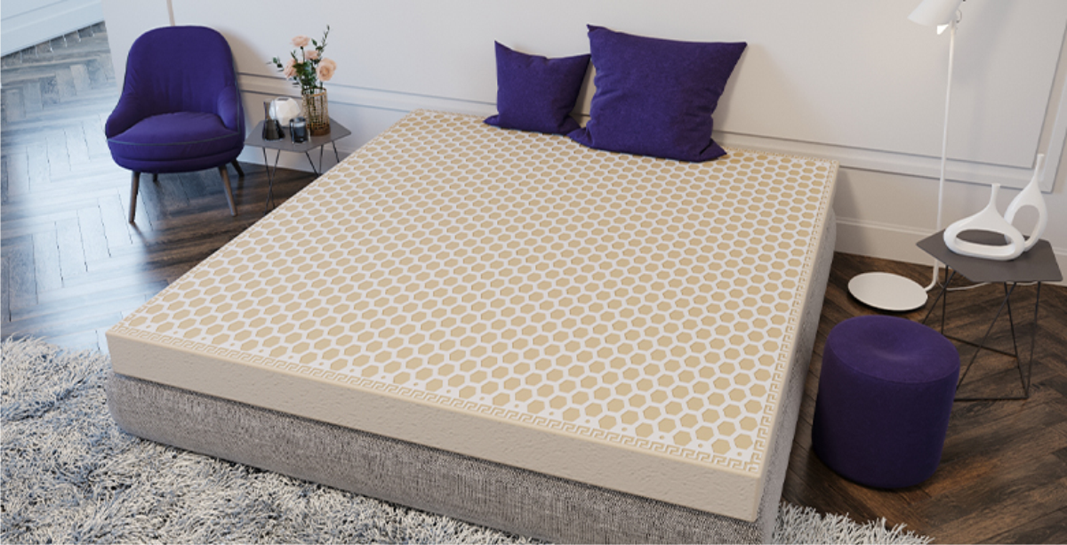 Thiết kế thoáng khí hình lục giác đều lấy cảm hứng từ kiến trúc kiểu tổ ong (cấu trúc bền bỉ nhất trong tự nhiên), tạo ra một tấm nệm siêu đàn hồi và bền chắc.