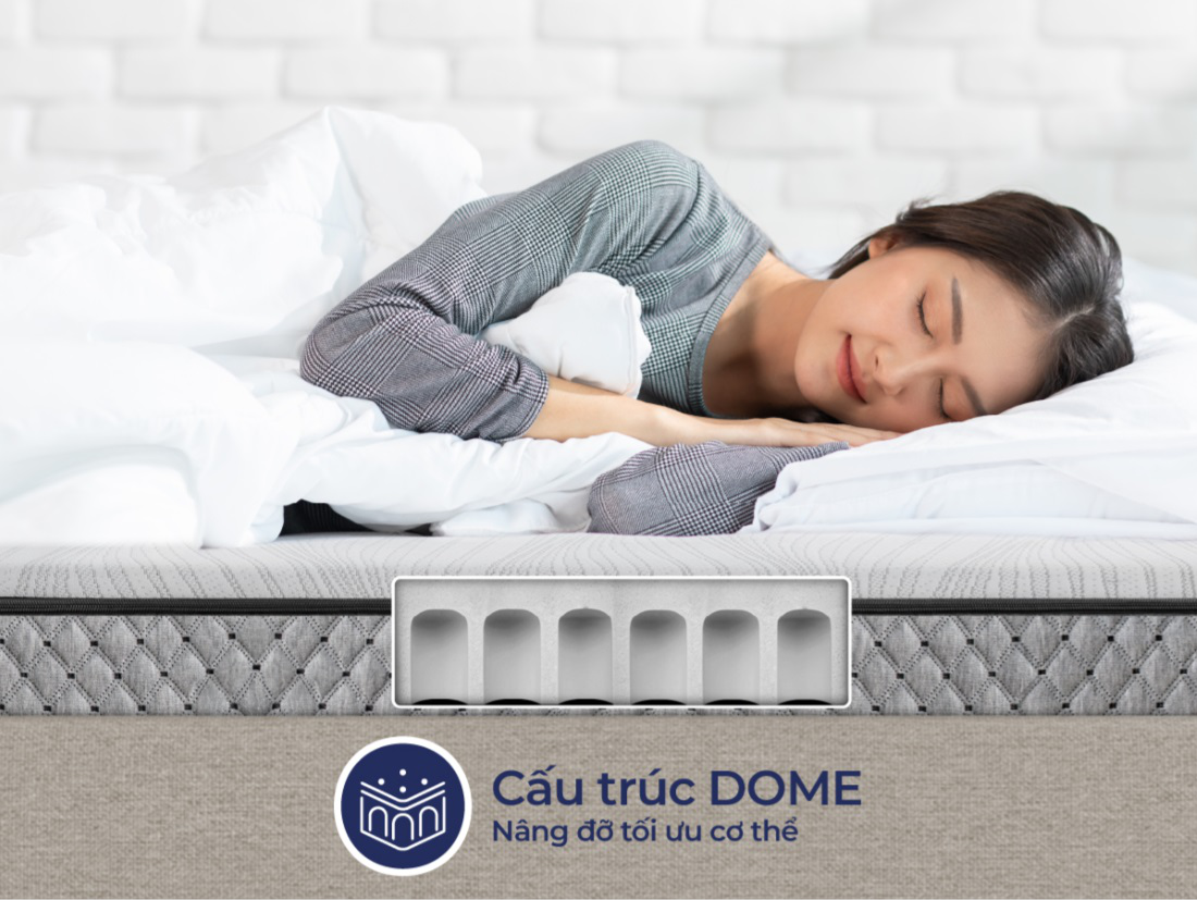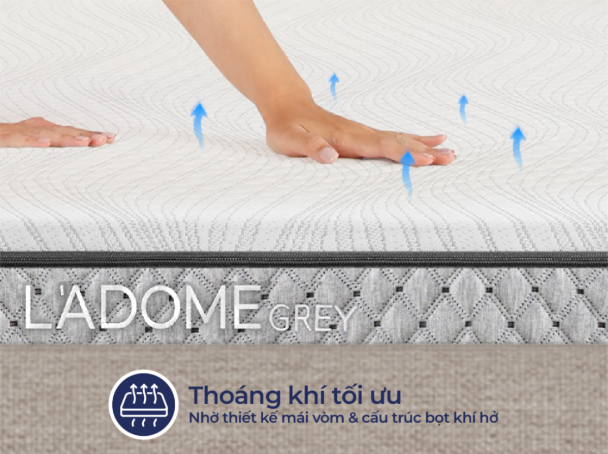Thiết kế mái vòm thúc đẩy lưu thông không khí, giúp duy trì môi trường ngủ mát mẻ và thoải mái, người dùng tránh được cảm giác hầm nóng, bí bách và giảm nguy cơ ra mồ hôi gây khó chịu trong khi ngủ.