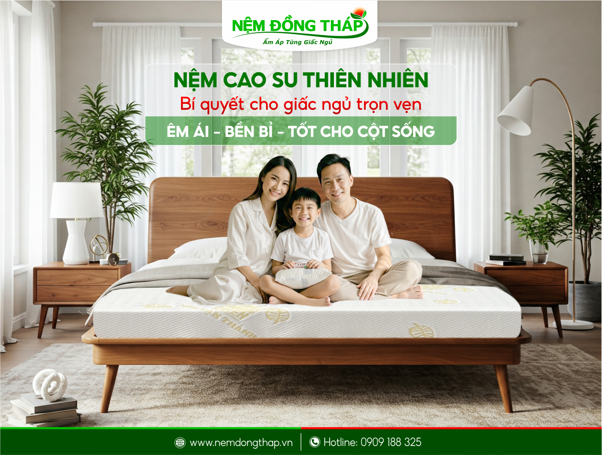 Chọn một chiếc nệm cao su chất lượng không đơn thuần là việc thay thế một món đồ trong phòng ngủ mà là đầu tư cho sức khỏe, sự nghỉ ngơi và cả chất lượng sống của bạn. Hãy để Nệm Đồng Tháp đồng hành cùng bạn và gia đình trong hành trình xây dựng một không gian nghỉ ngơi thật êm ái, ấm áp và yêu thương mỗi ngày.