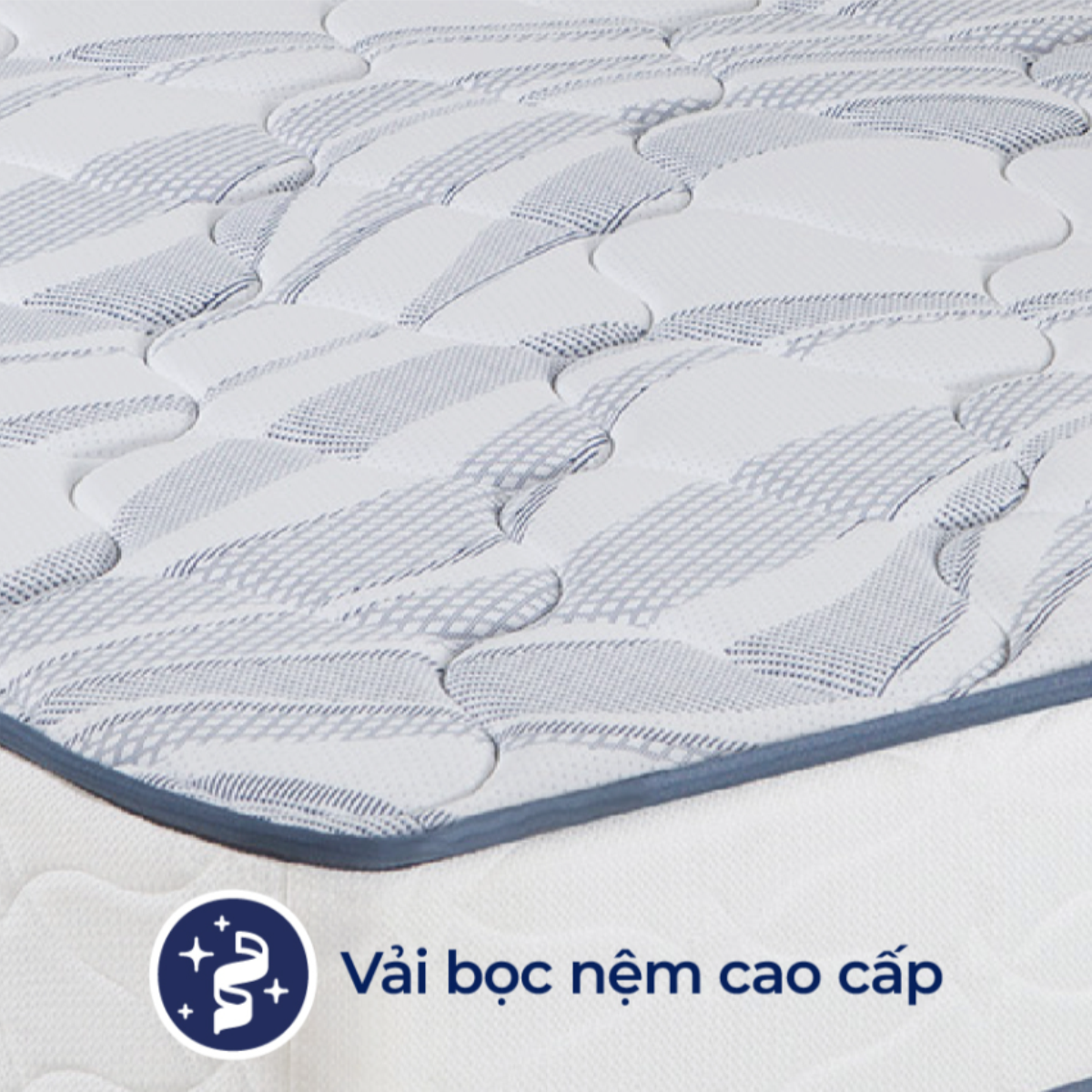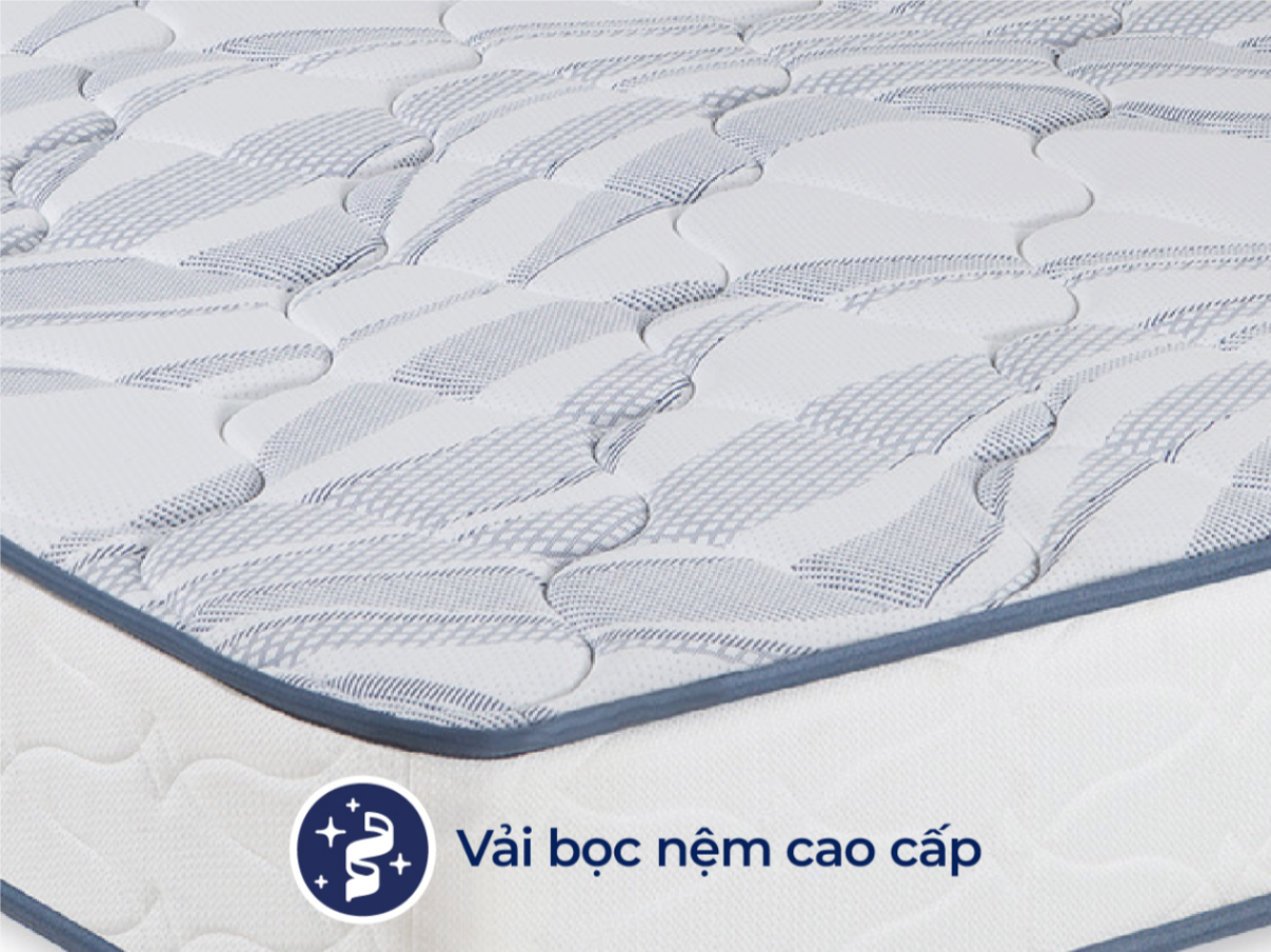 Vải dệt mềm mại tạo cảm giác thoải mái và dễ chịu cho giấc ngủ thêm ngon. Đặc biệt, vải bọc mềm mại, kháng bụi, chống nấm mốc và độ thông thoáng cao, giúp thoát nhiệt tốt, hạn chế tình trạng bí bách và nóng bức khi ngủ.