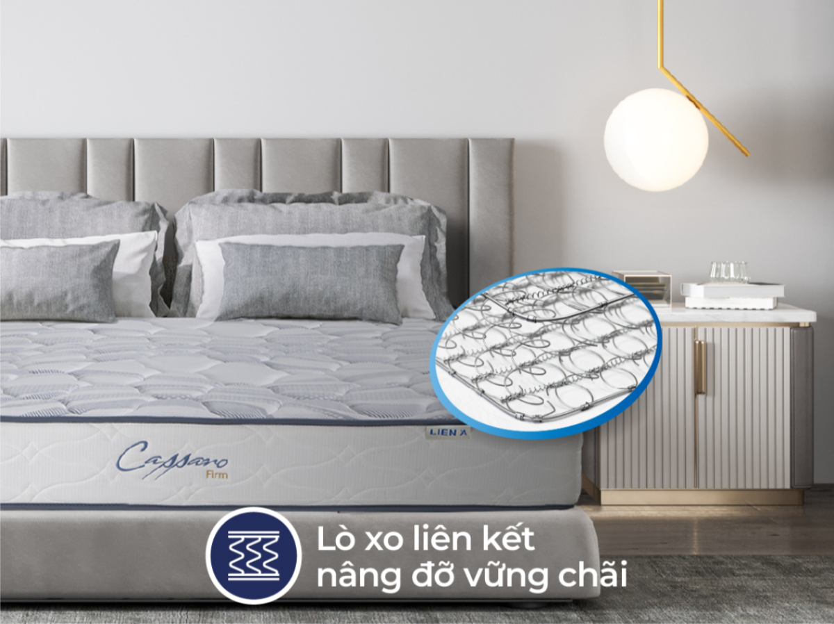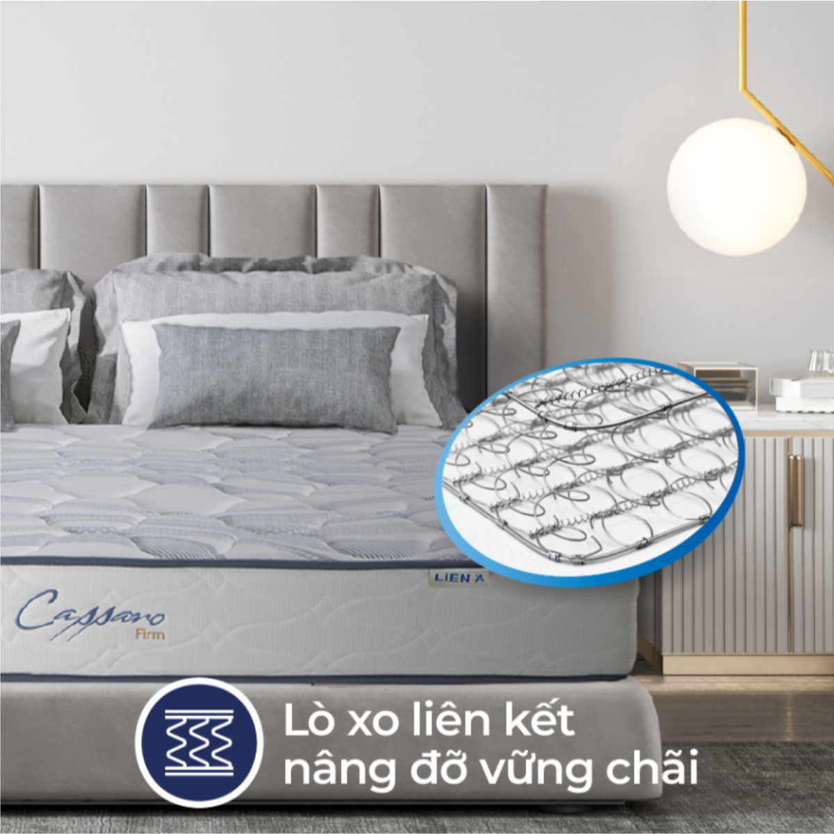 Nệm lò xo Liên Á Cassaro Firm là lựa chọn lý tưởng cho người dùng yêu thích cảm giác vững chãi và thoải mái. Sản phẩm sử dụng hệ thống lò xo liên kết sản xuất theo tiêu chuẩn châu Âu, đồng bộ hóa độ cứng trên toàn bề mặt, mang đến sự nâng đỡ cân bằng cho từng vùng cơ thể. Kết hợp cùng các lớp lót đàn hồi cao và thảm hấp thụ chuyển động, nệm giúp giảm độ xóc, cho cảm giác êm ái, bền bỉ và dễ chịu ngay từ lần nằm đầu tiên.