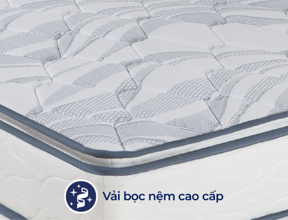 Cảm giác nuông chiều cơ thể và sự êm ái được gia tăng nhờ lớp gòn được thêm vào phía dưới vải bọc bông mềm mại, mang đến cảm giác dịu dàng khi chạm da cùng khả năng hấp thụ lực tối ưu. Nhờ đó, bạn có thể thoải mái ngả lưng trên nệm để tận hưởng cảm giác êm ái, dễ chịu.
