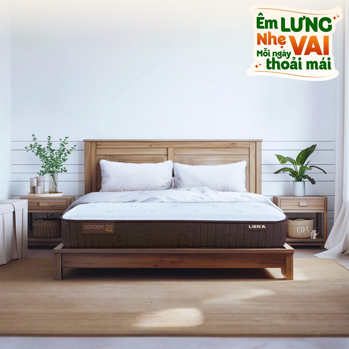 Nệm lò xo túi Liên Á COCOON 2.0 Firm cấu trúc lò xo túi độc lập nâng đỡ và xoa dịu cơ thể một cách tối ưu. Từng cuộn lò xo được uốn kỹ càng từ thép cao cấp nhập khẩu, được kiểm định khắt khe trước khi đưa vào túi bọc, tạo nên lớp lò xo đế đàn hồi cao và êm ái. Ở mỗi vị trí cơ thể đè lên nệm có trọng lực khác nhau và sẽ nhận lại sự nâng đỡ tương ứng, giúp cơ thể duy trì đường cong sinh lý tự nhiên, nhờ đó mà bạn sẽ luôn cảm thấy thư giãn, ngủ dậy cơ thể khỏe khoắn đầy sức sống.