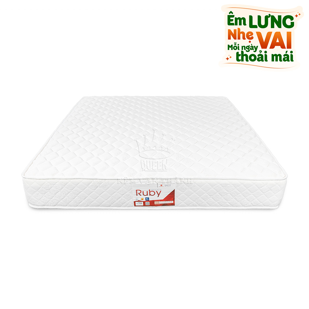 Nệm lò xo túi Vạn Thành Ruby sự kết hợp giữa bọt foam đàn hồi tỷ trọng cao với công nghệ lò xo được đóng túi độc lập riêng biệt. Các tính năng này hoạt động cùng nhau để mang lại cho bạn trải nghiệm giấc ngủ tuyệt vời.