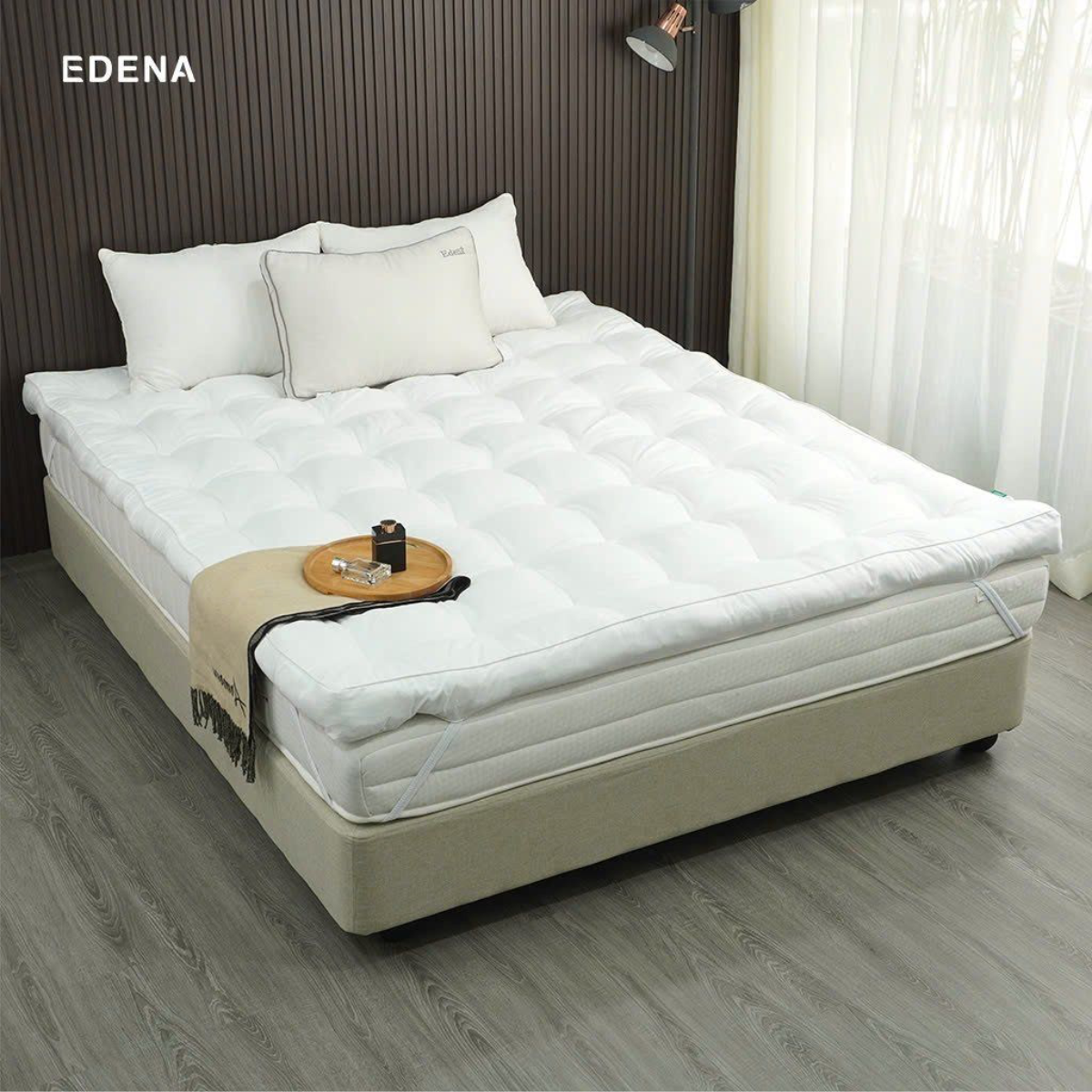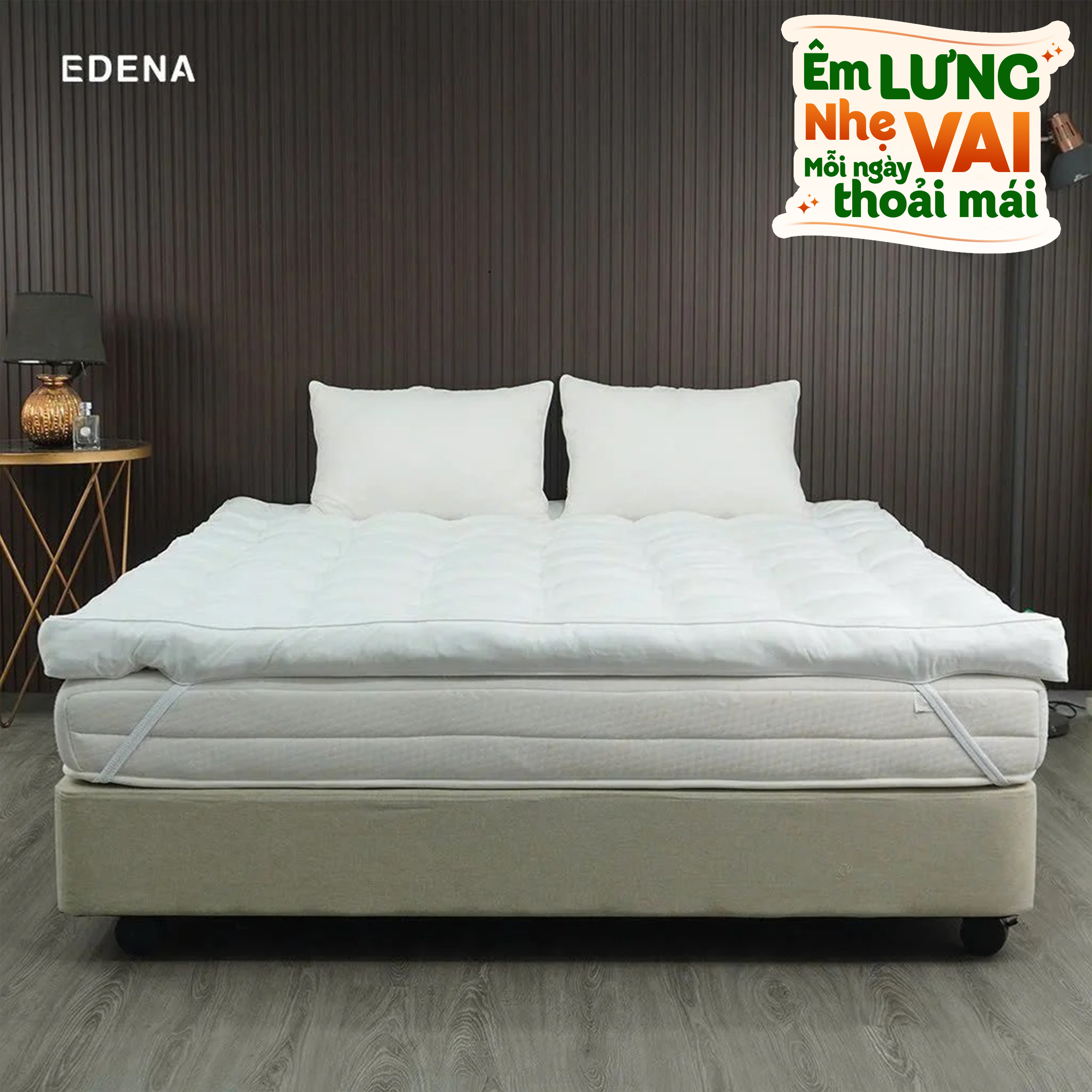 Độ dày tiêu chuẩn: như tiêu chuẩn của khách sạn 5 sao, topper hoàng gia Edena sử dụng cực kì êm ái và bồng bềnh.