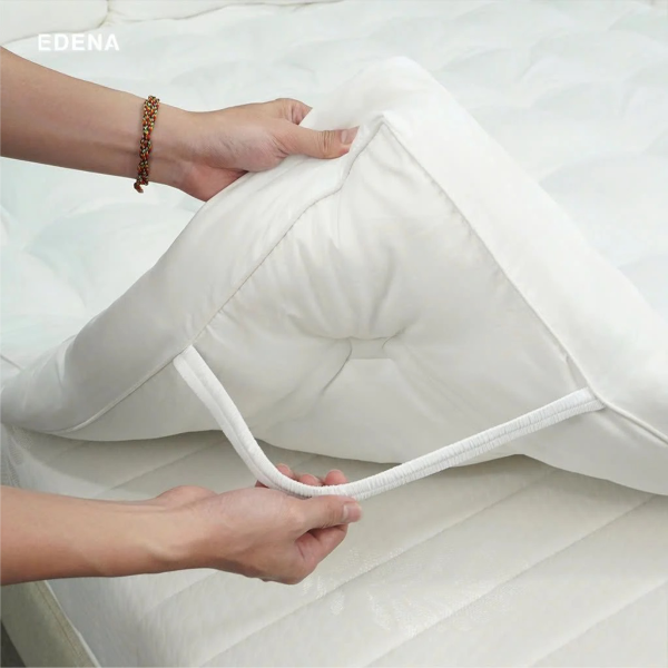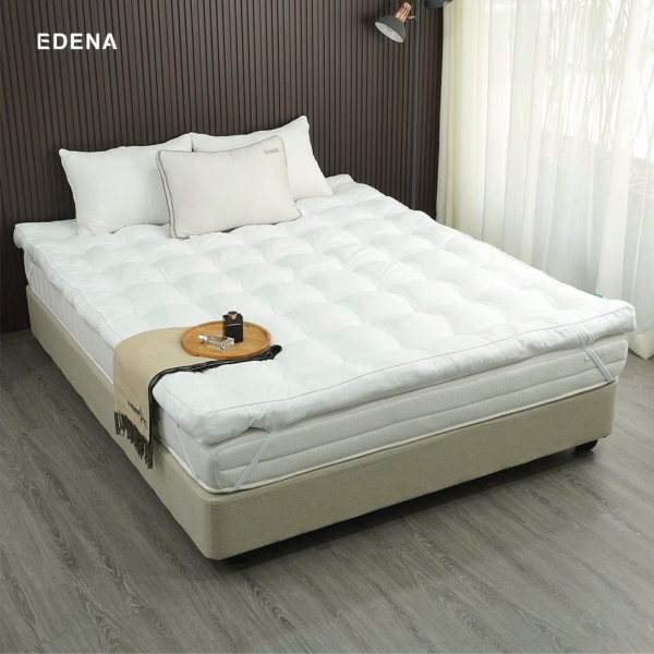 - Sử dụng trong môi trường thích hợp: Topper hoàng gia Edena được thiết kế dành cho những ai yêu thích sự êm ái, bồng bềnh như tiêu chuẩn khách sạn 5 sao. Sản phẩm này đặc biệt phù hợp với phòng ngủ sử dụng máy điều hòa, vì chất liệu cao cấp và có độ dày 10cm có thể giữ ấm tốt.