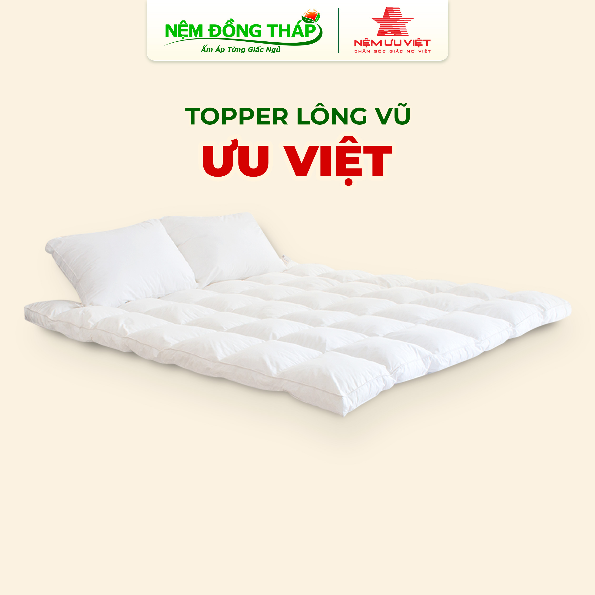 Topper lông vũ Ưu Việt ngày càng được nhiều người tiêu dùng lựa chọn để nâng cấp nệm và cải thiện tính năng cho nệm cũ và nệm quá cứng.