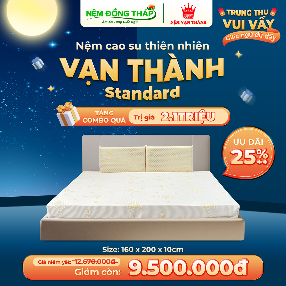 Nệm cao su thiên nhiên Vạn Thành Standard – Ưu đãi 25% + Tặng combo quà trị giá 2.100.000đ