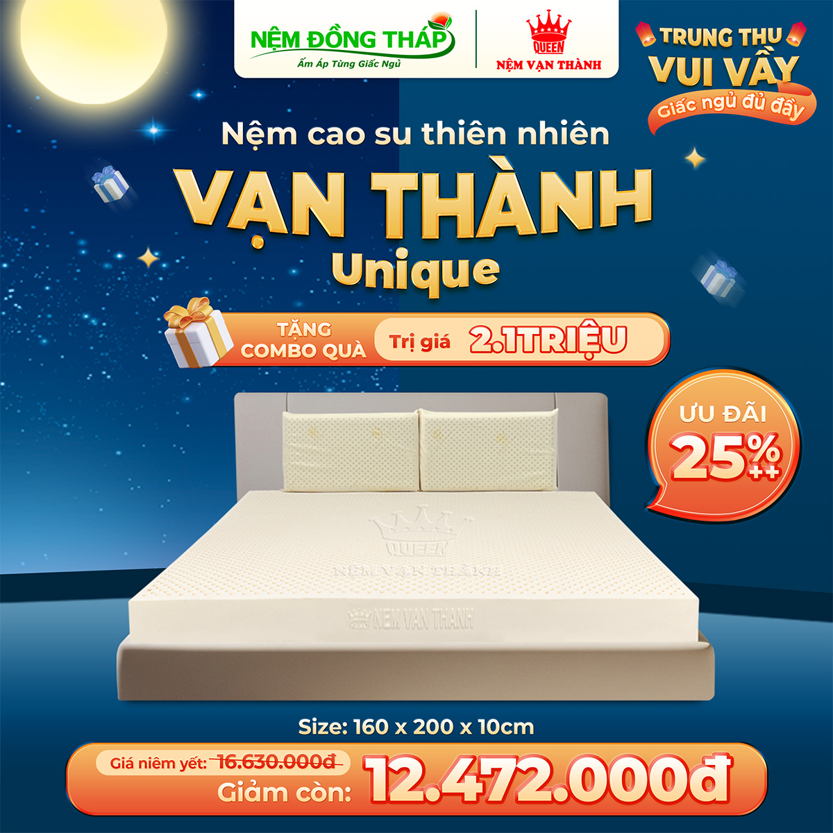 Nệm cao su thiên nhiên Vạn Thành Unique – Ưu đãi 25% + Tặng combo quà trị giá 2.100.000đ