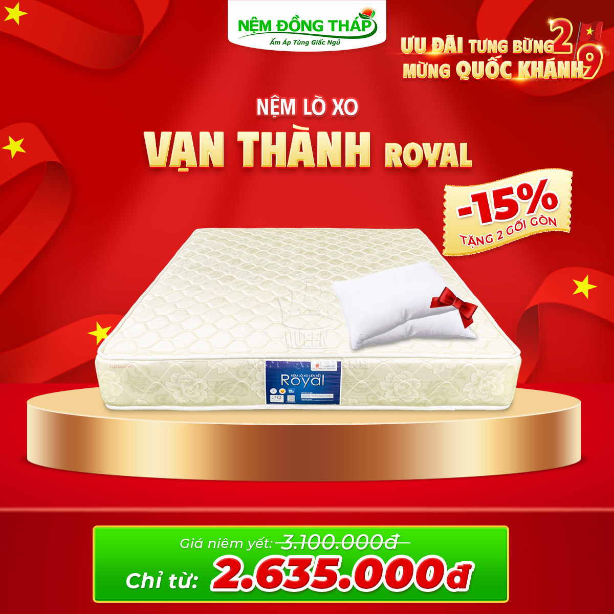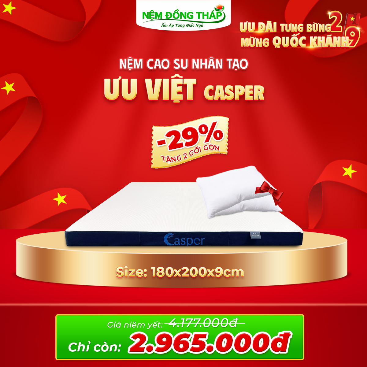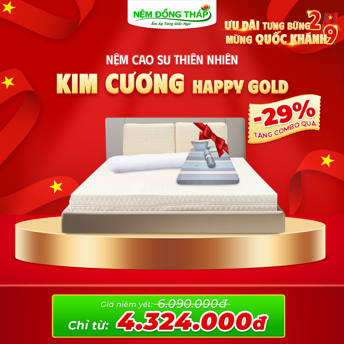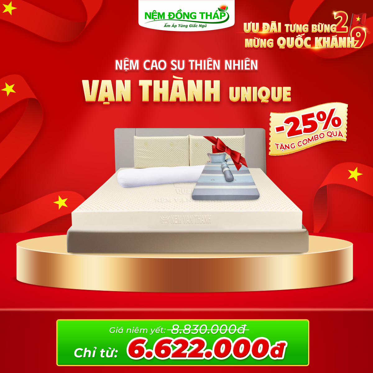 Nhân dịp Quốc Khánh 2/9, Nệm Đồng Tháp trân trọng gửi đến Quý Khách hàng chương trình khuyến mãi đặc biệt với mức giá hấp dẫn chưa từng có. Đây là cơ hội vàng để bạn nâng cấp không gian nghỉ ngơi, chăm sóc giấc ngủ và sức khỏe cả gia đình.