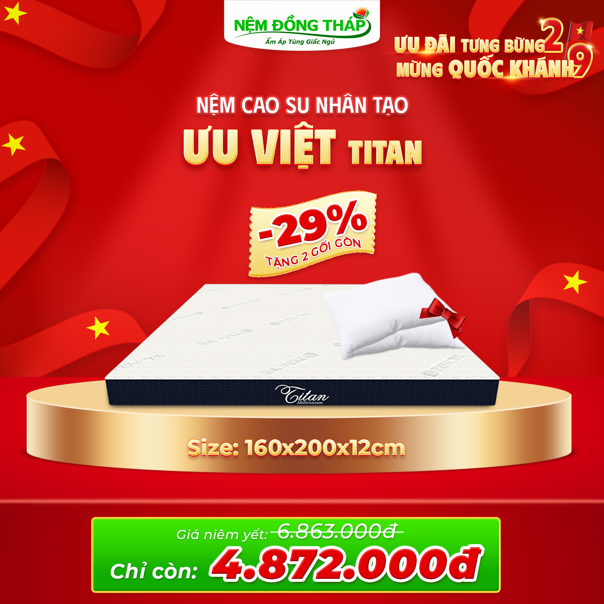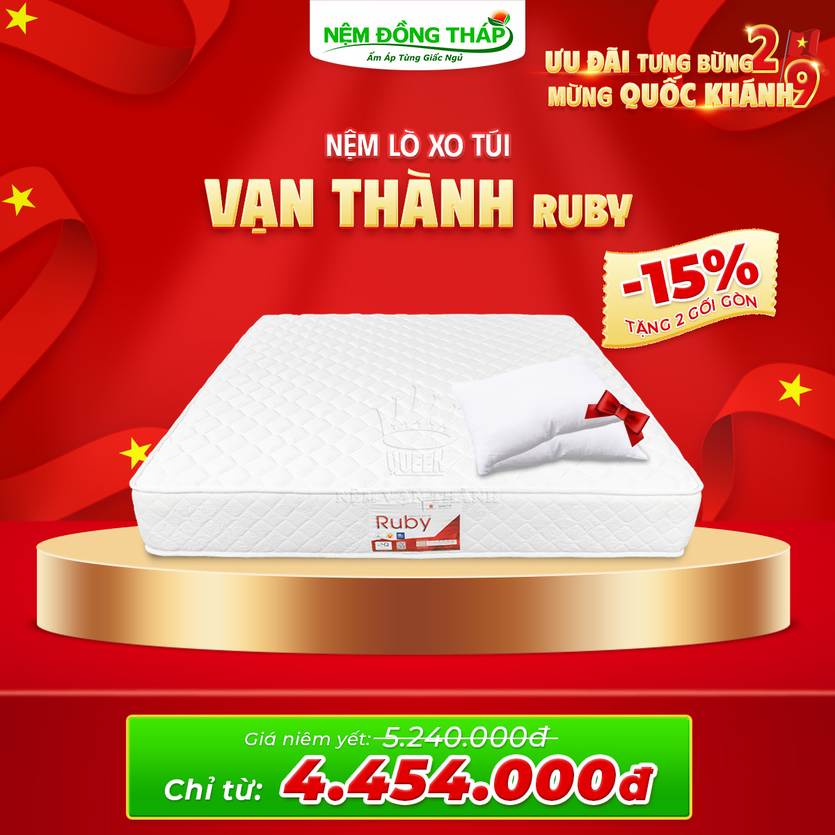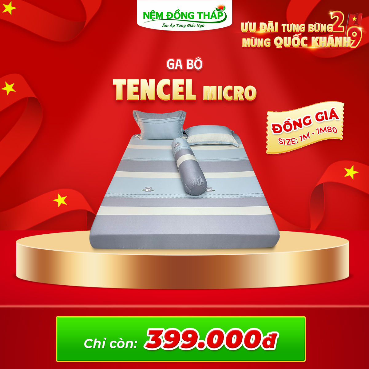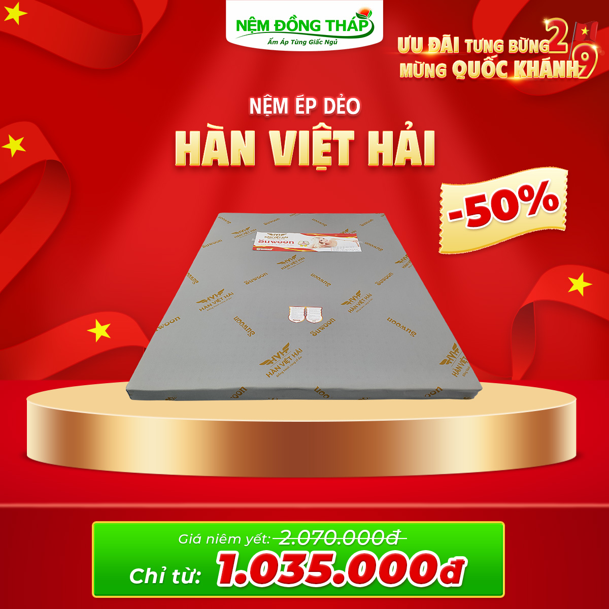 Nhân dịp Quốc Khánh 2/9, Nệm Đồng Tháp trân trọng gửi đến Quý Khách hàng chương trình khuyến mãi đặc biệt với mức giá hấp dẫn chưa từng có. Đây là cơ hội vàng để bạn nâng cấp không gian nghỉ ngơi, chăm sóc giấc ngủ và sức khỏe cả gia đình.